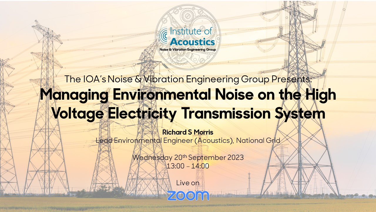 National Grid is the largest electricity transmission and distribution business in the UK. Richard will talk through the key issues that his team faces in managing noise from the high voltage electricity transmission system which comprises around 330 substations and over 7,200 kilometres of high voltage overhead lines across England & Wales. Richard will describe the principal noise sources which include transformers and shunt reactors and also cover issues specific to overhead lines in the context of the ‘The Great Grid Upgrade’ which is the is the largest overhaul of the electricity grid in generations.