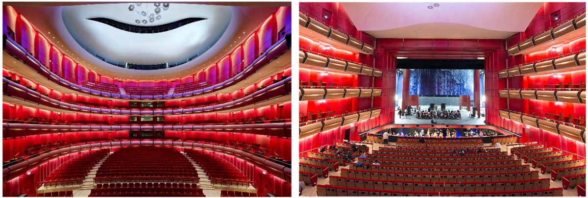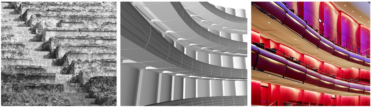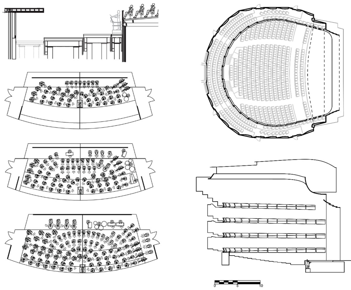 A A A Volume : 45 Part : 2 Proceedings of the Institute of Acoustics The design of the SNFCC Opera Theatre auditorium and a reflection of the reciprocal influence between opera theatre and concert hall design Alban Bassuet, Arup Acoustics, New York, USA Raj Patel, Arup Acoustics, New York, USA Ryan Biziorek, Arup Acoustics, New York, USA Kurt Graffy, Arup Acoustics, San Francisco, USA Andy Guthrie, Arup Acoustics, New York, USA Rachid Abu-Hassan, Arup Acoustics, Amsterdam, NL Kathleen Stetson, Arup Acoustics, New York, USA 1 INTRODUCTION Opened in 2017, the new Stavros Niarchos Foundation Cultural Center (SNFCC) is one of the largest cultural projects recently realized in Europe. The vast and ambitious development is a cornerstone of continued urban renewal and regeneration, as well as a progressive 21st Century investment in cultural infrastructure for Greece to share knowledge, culture, and the presentation of the performing arts. Its success is in many ways a symbol of the revitalization of the country after its period of crisis, playing a major role in the economic, cultural and sociological development of Athens, and of the country. Led by Renzo Piano Building Workshop Architects, the project features a building set within a new 200,000m2 park which contains the National Library and National Opera House. The Opera House is the new home for the Greek National Opera and Ballet with a 1,400-seat opera theatre, a 480- seat alternative stage, and a full suite of opera, chorus, orchestra, musician and dance’s rehearsal and practice rooms. The occupied spaces are set inside an artificial hill, built to elevate, and provide views to the Aegean Sea to the South, and to the Acropolis to the North, and project visitors at the intersection of the exceptional history of these sites. The public park, which covers the building, provides a sense of informality and ownership to the surrounding community, families, and visitors. Visitors are invited to wander through the Mediterranean vegetation before entering the facility to attend an event, visit the library, sail on the canal, take a dance lesson, or enjoy the architecture. The first article1 published about the project in the acoustics community discusses the initial concept for the design of the opera house, at the inception of the project. The second article2 presents the final acoustical performances of the performance spaces once completed, and the range of formal/informal, indoor/outdoor performance venue environments. In this article, we invite the readers into the journey of the making of the opera theatre, highlighting the influences and ideas for its design following five generations of designers at Arup, and the inspirations and benchmarks in relation to Greek Culture. We follow with a summary of the final acoustical performances of the opera theatre and compare them with a range of other relevant opera houses and concert halls. Throughout the article, we point out how in recent history concert hall design has influenced the design of opera houses, and from the observations of the performance of the SNFCC opera theatre, ask the question if features of opera house design could help with future concert hall designs. We highlight particularly how the musical and immersive characteristics of the theatre are supportive of both the opera and the symphonic sounds, and how these features can be transposed to the design of new venues. As closing a section, we provide project examples implementing this approach, ranging from the adaptative re-use of existing spaces, reconfigurable opera/symphonic venues, to surround concert halls. 2 OPERA HOUSE DESIGN, AN ARUP LEGACY 2.1 Early Period (1953-1980) The advent of Arup as a firm since its creation in 1946, is intricately linked with the accomplishment of the Sydney Opera House. Solving the construction challenge of the giant pre-cast concrete shells envisioned by Architect Jørn Utzon, Ove Arup imagined a structural system of rectilinear steel elements, derived from a regular sphere, allowing re-usable molds to fabricate the concrete ribs that support the shells and components that could be fabricated off site, and put together as a kit of parts. This kicked-off a tradition for innovative opera house design at Arup. Core to the project design and delivery of the project ambition, Ove implemented a mindset for multi-disciplinary collaboration – a novel approach at the time – supported by robust engineering, to enable imaginative architecture that can carry the ambitions of a nation, thus reconnecting with a long tradition of emblematic opera house buildings, (Versailles, Garnier, Semperoper, Staatsoper, etc). In 1963, the firm eventually created its own architectural design practice, Arup Associates, integrating architecture and engineering. The lead partner, Derek Sugden, Arup’s first acoustician, and structural engineer by training, built-up the first portfolio of concert hall and opera house projects. If Ove could be seen as carrying the philosophical framework of the practice, Derek brought the humanistic and sensorial aspects, and applied his enjoyment of music and opera to the making of joyful and warm buildings. He often said: “The sound is as important to me as the surface. Our ears define the nature of space”. Some of Derek’s most representative music spaces and approach to materials include the design of Snape Maltings Concert Hall in collaboration with composer Benjamin Britten, the renovation of the Buxton Opera House, Covent Garden Royal Opera House, and the Glasgow Theatre Royal. In 1994, he collaborated with Michael Hopkins and Partners, (now Hopkins Architects), to design the new Glyndebourne Opera House - a notable milestone, along with the Plymouth Civic Theatre, as it signifies a turning point in opera house design, where the focus of design was more to create an intimate opera space to the scale of human voice, rather than an oversized auditorium with compromised acou