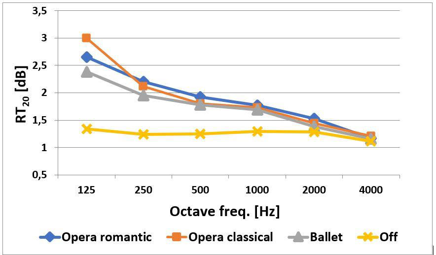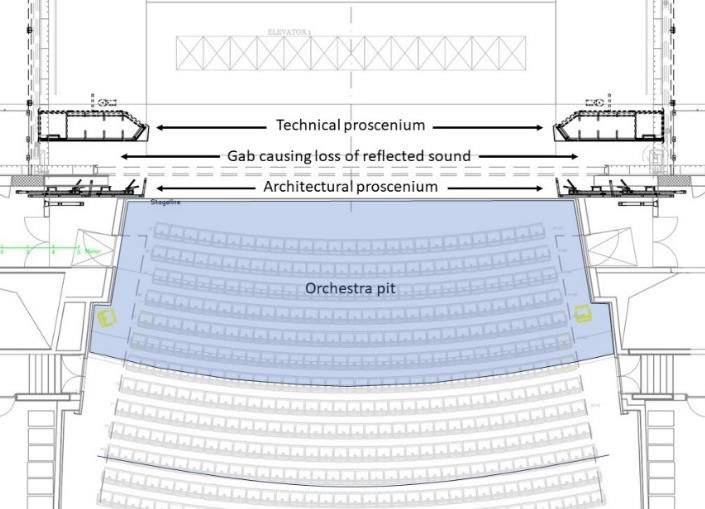 A A A Volume : 45 Part : 2 Proceedings of the Institute of Acoustics Acoustical challenges in horse shoe shaped opera houses A. C. Gade, Gade & Mortensen Akustik A/S, Charlottenlund, Denmark 1 INTRODUCTION In spite of its intrinsic acoustic challenges, the horse shoe shaped Italian Baroque theatre is still the most common model when new opera halls are designed. Based on the author’s experiences in research and consultancy regarding such halls, the following topics will be touched upon in this paper: 1) singer-orchestra balance and how it can be influenced by the stage sets and of the design of the proscenium zone, 2) the effects of pit floor size, pit floor construction, overhangs, sound absorbing surfaces, pit floor height and screens on the musicians’ acoustic environment, 3) sound exposure levels in opera orchestras, and finally 4) the application of electroacoustic enhancement either to increase reverberance for both audience and performers (particularly relevant in older opera halls) or as a possible way to improve mutual hearing between singers and orchestra. 2 THE BALANCE BETWEEN SINGERS AND ORCHESTRA When the new opera in Copenhagen opened in 2005, it was soon clear to the Royal Opera company which had a history of more than 100 years of performing in the smaller “Old Stage”, that the new hall was much more challenging. The dimensions of both stage, proscenium and orchestra pit in Operaen is much larger than in the “Old Stage” as shown below. Comparison Volume # of seats Width of Prosc. Dist. Stage to 1st row Operaen 10,300 m3 1700 17 m 8 m “Old Stage” 6,500 m3 1400 12 m 6 m The auditorium volume in Operaen is about 50 % larger than in the Old Stage, and in contrast to the Old Stage, Operaen has large side stages and rear stages. Consequently, in Operaen the singers easily felt “lost” (lacking support to their own voices) and in combination with the larger visual distance to the audience they felt that they did not reach the audience. The orchestra also complained. They felt the sound in the pit was too loud, likely because the conductors asked them to play louder in order to fill the larger space. In the year following the opening this author was asked to help unveiling – or perhaps solving - the stage-pit-balance and the loudness-in-the pit issues. Investigations on ways to improve the level of the singers as heard in the auditorium are described below while the problems of high levels in the pit are described in the following chapter. 2.1 Guide lines for stage set design The first attempt to improve the balance issue was to define a set of guidelines for the design of stage sets in the new opera, since it is obvious that the stage set surfaces can have a significant influence on how well the singers’ voices are projected into the auditorium. The guide lines addressed four factors of importance: The size of the active acoustic space behind the proscenium as defined by the stage set dimensions. The smaller this space the closer the singer will be to potentially reflecting surfaces. However, the stage set should not be so narrow or low that the singers experience the surroundings as a local, small space decoupled from the main hall volume. Rather the stage set should form a natural continuation of the surfaces in the auditorium so that singers, orchestra and audience feel that they are in the same acoustic space. In particular, a reflecting wall too far upstage should be avoided, as this could even create echoes back into the auditorium if singers are placed close to the stage front and turning their back to the audience. The total surface area of the stage set. In order to reflect as much as possible of the sound emitted by the singers it is advantageous if the stage set includes not only a rear wall but also closed sides and a ceiling surface. This also minimizes the amount of sound energy being lost in the large stage and fly tower volume. Minimizing the area of openings between the stage and the fly tower will also maximize the reverberance in the auditorium (which has a reverberation time around 1.4 Sec.1). The orientation of the set surfaces. The geometry of the surfaces will define whether the sound is reflected towards the auditorium or back to the singers on stage - or somewhere else. In particular, the angles of the side walls relative to the long axis is important. When the singers turn their side to the audience the reflections off the side walls may even be louder than the direct sound reaching the listeners. Subdivision of the side walls in narrow “legs” parallel to the stage front (as often seen as a way to ensure stage access without the audience being able to see the side and back stage areas) is not helpful. The choice of materials for the stage set will determine the efficiency of the reflection. Large areas of absorptive materials like (folded) drapes or sound transparent canvas are not suitable whereas hard, nonporous materials like Plywood, Acrylic, steel and even heavily painted canvas may be applied. For reflecting materials, also the mass per square unit matters. It should be high enough (no less than say 3 kg/m2) for most of the vocal frequency range to be reflected. In the guide lines it was also pointed out that the director should place the singers as far down stage as feasible so that they see most of the wall and ceiling surfaces in the auditorium and have maximum contact with its acoustics. 2.2 Enlarging the reflective area in the proscenium zone Besides the stage set itself, also the proscenium zone and the walls next to the proscenium in the auditorium are important reflecting areas for the singers’ voices. In the new Operaen in Copenhagen (and other newer operas), a technical proscenium is placed on the stage a couple of meters behind the architectural (visible) proscenium. This installation holds theatre lights and other equipment but it also hinders the stage set being placed close to the architectural proscenium