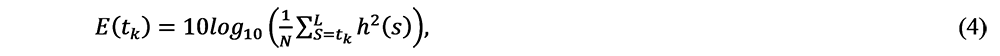 A A A Volume : 45 Part : 2 Proceedings of the Institute of Acoustics Finding early time limits 𝒕𝒆 with nonlinear regression on energy decay curves C. Q. Xia, Department of Building Environment and Energy Engineering, The Hong Kong Polytechnic University, Hong Kong, China S. K. Tang, School of Engineering, The University of Hull, Hull, UK 1 INTRODUCTION This study started with building a database for the existing Jockey Club Auditorium (JCA). Using the impulse response method to measure numerous seats which cover the whole auditorium. Based on hundreds of in-situ measurements in each seat point to investigate the hall's acoustic performance. Reverberation time (RT) distributed in the whole auditorium is always similar in the hall with fixed volume and absorption areas. While impulse response (IR) shows the apparent difference between seating areas close to a lateral wall and middle areas, The measurement shows plateau energy decay in the middle frequency which reveals an early reflection effect in the front seat area. While in the middle areas, exponential decay presents stability indicating the direct sound is predominant with subsequent reverberation attenuation. Schroeder first put forward the backward integrated energy curve also called as energy decay curve (EDC) in the 60s. All the acoustic parameters like Reverberation Time, Clarity, and Definition are based on the energy decay in EDC. Impulse responses in the entire auditorium are expected to propose by Volume and RT and Source receiver distance by Sabine and Barron. While the hall geometric data and the first lateral reflection path difference calculated from the point of source and receiver in seating areas shows differences, the middle area shows an exponential decay, while the EDC near the side wall always has a plateau. To find out the attenuation of the impulse response in the early reflection, we propose a nonlinear method to find the early time limit which separates the early reflection and lateral reverberation. Sound attenuation can be calculated with surface shapes defined by surface absorption coefficient by using simulation software with time-consuming, an intuitive understanding of impulse response could get from the early time limit 𝑡𝑒 distribution by in-situ measurement. 2 THEORETICAL METHODS 2.1 Callback to Schroeder Integrated Impulse Method Schroeder proposed the backward integration of the squared impulse response to calculate reverberation energy decay.1 The sound excites like an e-sweep or MLS signal and is generated by an independent omnidirectional sound source. Maximum length sequences (MLS) are binary sequences also known as pseudo-random binary sequences that are commonly generated by a cyclic shift of m-sized linear feedback shift registers along with a primitive polynomial. The periodic length P can be generated using the recursive formulation is equal to 2𝑁−1, where N is the order of shift register.2 A m-sequence of order 18 can generate a pseudorandom signal of 5.46 seconds with a sampling frequency of 48000 Hz. The deconvolution of interrupted noise can be analytically to generate room impulse response h(t), which backward integrated from t to infinity get energy time decay.3 𝐷(𝑡𝑘) is the decay function and 𝐷(𝑡𝑘) is the normalized decay function respectively. Thus, the logarithmic energy decay curve 𝐸(𝑡𝑘) can be expressed as the following equation, Jordan4 definite “steepness” 𝜎 at a time 𝑡0 corresponding to the 5dB below steady state during the buildup process. which is using the derivative of the decay curve for the first time. He also pointed out that early decay time (EDT) is a great parameter to describe the attenuation of the sound field from -5dB to -15dB in the early stage. Nonlinear regression is used to find the best fitted decay in the truncated time interval.5 The modified model defined the theoretical energy density following a linear decay before exponential decay.6 Berardi et al7 compared the μ model and implement factor γ to the estimated energy of the direct sound in churches. 2.2 Early Decay Curve and Running Steepness Processing Barron8 summarized the early decay curve into three typical decay shapes “cliff-type”, “plateau-type” and “sagging”. Fig. 1 illustrates the decay curve after direct sound arrival. The cliff decay represents the direct or early-reflection sound quite strongly. The plateau decay in Fig. 1(a)(ii) indicates the early reflection absence. While the measurement of JCA finds the plateau (early reflection) appears between the direct and reverberation sound in Fig. 1(b)(ii). The sagging reverberation curve is common in the back row of the auditorium far away from the source on the stage. In the actual comparison, the plateau produced by the early reflections has an apparent effect on the reverberation time (RT), it has troubled the reverberation time like T10, T20, T30 which selects -5 dB as the start point of slope reference. The same problem also happened on identifying which time interval like 50, 80 milliseconds chosen as the division of the energy ratio involving the perceived definition like Clarity and Definition.9 Figure 1: Types of early decay curve affected by early reflections in shoes-box shape auditorium compared with M. Barron EDC. (a) M. Barron EDC; (b) Measured EDC. (i) Cliff-type decay; (ii) Plateau-type decay; (iii) Sagging decay. Past research mainly focuses on overall energy decay. Here the nonlinear running “steepness” 𝜎(𝑥,𝑡𝑘) of normalized decay curve 𝑑(𝑡𝑘)calculated from the running slope interval which fits a first degree least-squares polynomial, the running slope interval ∆𝑡 of the polynomial fitting is set to 10ms to avoid the influence of signal fluctuations on the slope in very small intervals. Total sound energy can be calculated by normalized energy time decay as shown in Fig. 2. Least squares fitting proceeds the sum of the squares 𝑠