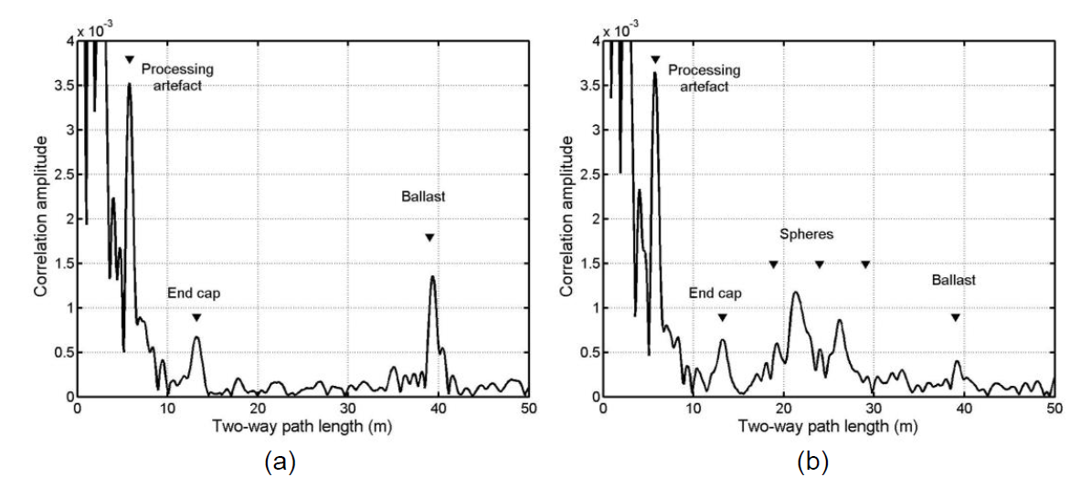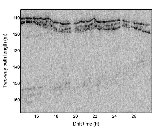A A A Volume : 38 Part : 3 Proceedings of the Institute of Acoustics Is acoustic noise and variability a nuisance or a potential tool? C. H. Harrison Emeritus, Centre for Marine Research and Experimentation, Viale S. Bartolomeo 400, 19126 La Spezia, Italy 1 INTRODUCTION Fluctuations, variability, uncertainty, incoherence, ambient noise and reverberation are some of the things that acousticians have to put up with when trying to use sound to detect, localize and classify objects under water or in air. Each of these topics leads to interesting domains of physics and engineering research in its own right, and an integral part of this research is the signal processing or data processing that is used to extract whatever is deemed to be the "signal". Recent developments into robotics have introduced the possibility of multiple interactions and communications between autonomous underwater vehicles (AUVs) and gliders with real time on board modelling and processing. Analysis of such systems involves game theory, pursuit theory, and much more complicated operational analysis. In addition to obvious defence applications, on board sensors and processors can be used in oceanographic and geophysical applications where a glider, for instance, can continue zig-zagging between surface and seabed, recharging at the surface, almost indefinitely. Many man-made sounds from shipping, machinery or sonars may also be loud enough or persistent enough to be irritating to humans and marine mammals, and so any studies of these sources and propagation from them usually tend towards reducing or getting rid of them. Although ambient wind and wave noise may be a hindrance for a detection system it contains a huge amount of encoded information about the ocean boundaries which may be extracted in various ways. Even though propagation from distant sources may encounter the surface and seabed many times the bottom reflection loss may be determined from the directionality of the noise as received, for example, by a vertical array1,2,3. A completely different technique originated in ultrasonics4,5,6, and has been developed in seismology ("seismic interferometry")7,8 and in the ocean acoustic horizontal plane with ships9-12 and the ocean vertical plane ("passive fathometry")13,14. In all cases there are two "signals", either from spatially separated receivers or one receiver and its image in a layered seabed or a target, whose cross-correlation is related (as will be shown in Sect. 2) to their Green's functions or the impulse response from one to the other. A summary of various techniques was given in Ref.15; here we concentrate on passive fathometry, where a drifting 32-element vertical array with no man-made source can produce a sub-bottom profile with two-way bottom penetration of 50m or so13,14, that is indistinguishable from that produced by a boomer or low frequency echo sounder. A variant of this method, also discussed, has already been shown to be capable of detecting a point target16. An interesting question now is, can these same techniques be applied with more compact arrays from quiet platforms such as gliders that move (intentionally or unintentionally) in the vertical as well as the horizontal. This paper addresses some of the problems involved. 2 CROSS CORRELATION OF NOISE IN GENERAL The cross-correlation of the time series received on a pair of hydrophones in a noise field is closely related to the impulse response that would be received on replacing one of the pair by a sound source. More formally it can be stated that the Green’s function between two points can be recovered from the cross-correlation of the noise time series measured at those points. Various conjectures, assertions and proofs exist in slightly different contexts. Here we follow Ref. 10 in asserting that the Green’s function is proportional to the time derivative of the cross-correlation function. The credibility of this assertion can be reinforced by a simple example (taken from Ref. 10). The normalised cross-spectral density between a pair of points in a uniform noise field is By taking the Fourier transform this becomes the cross-correlation function (– a function of time) The time derivative is then which is the sum of the time domain Green’s functions between the hydrophones, taken either way round. To understand this generally, imagine the paths between a single noise source (on the sea surface, say) and two separated receivers. The travel time difference between these paths has a maximum or stationary point when the noise source is on the projection of the straight line through the two receivers. Thus there is a sudden truncation in correlation offset time which corresponds exactly to the separation of the two hydrophones. The derivative with respect to time of this step function is a delta function, so the result is the time domain Green’s function between the hydrophones. In the case of sub-bottom profiling (passive fathometry) the real, 'single' receiver is an array of hydrophones which is simultaneously steered to endfire up and endfire down. The 'up' beam sees the noise source directly and the 'down' beam sees its reflection in the seabed (or in a target). In effect there is the real array and an image array supplying two signals that are then cross- correlated. Given sufficient integration time the result is identical to the impulse response from the centre of the array. 3 SUB-BOTTOM PROFILING WITH NOISE Siderius, et al.13 applied this approach to the domain of sub-bottom profiling by cross-correlating all possible pairs of hydrophones from a drifting vertical array and then aligning their peaks in time according to position on the array. This clearly demonstrates the link between correlating hydrophone pairs and correlating beam-formed time series. Harrison and Siderius14 derived a formula for the absolute value of the normalised cross-correlation of the upward- and downward- steered beam time series and also the deco