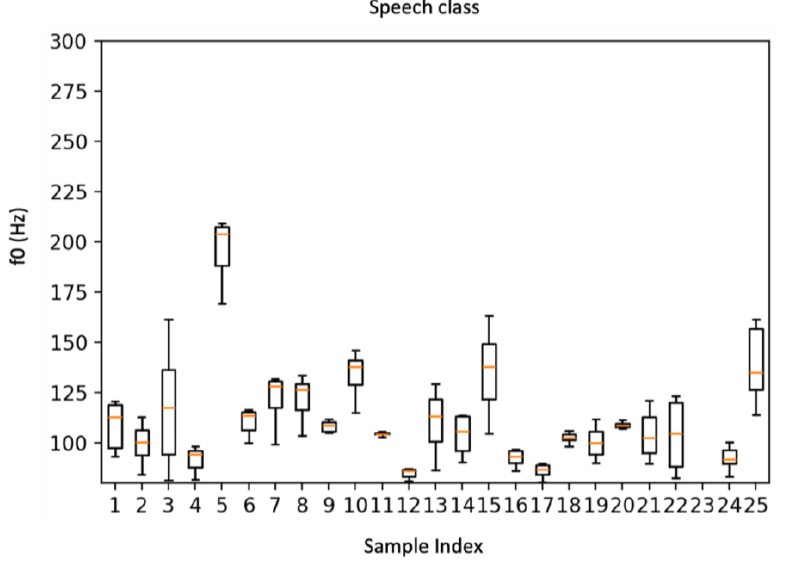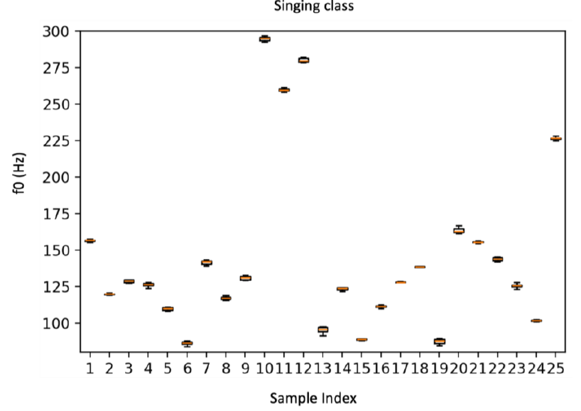 A A A Volume : 46 Part : 2 Proceedings of the Institute of Acoustics Evaluation of F0 stability in speech and singing using laryngeal bioimpedance measurements E Donati University of West London, London, England JZ Tomaszewska University of West London, London, England C Chousidis University of Surrey, Gilford, England Abstract Within human interaction, speech and singing represent essential and primordial forms of communication. The differentiation between these acts is hypothesised to be highly dependent on the stability of their fundamental frequency. Voice analysis is inherently dependent on the use of microphone which can make an accurate analysis of the fundamental frequency computationally dispendious and susceptible to noisy environments. In turn, current studies on singing–speaking distinction mainly rely on acoustical evaluation. The presented research seeks to provide a statistical analysis of the fundamental frequency variations in speech and singing by means of laryngeal bioimpedance measurements. These signals allow an accurate evaluation of the fundamental frequency whilst reducing the errors arising from noise and acoustic interreferences. A dataset was created containing 2400 laryngeal bioimpedance measurements with a 50:50 ratio of speech and singing. An evaluation of the fundamental frequency variability was conducted using the YIN pitch estimation method on batches of 200 randomly selected samples (100 of speech and 100 of singing). A statistical evaluation was then conducted to compute the variability of the fundamental frequency across the batches, The results support the hypothesis for which fundamental frequency stability is highly impactful in the distinction of speech and singing with speech displaying a substantially higher variability across all batches. 1 INTRODUCTION In human interaction, voice plays a pivotal role in day-to-day communication as well as being employed in other aspects of human society such as, for instance, arts. Whilst speech sits as the primary form of communication, voice is also vastly employed as a musical instrument through the act of singing. Despite the distinction between singing and speaking is perceptually clear for humans, the characterising elements of such distinction are not always clearly defined. Fundamental frequency (f0) is regarded to be the main distinguishing factor between the two voice acts [1, 2]. In singing, the tuning of the pitch and the control over the duration of the phonation is dependent on the tension of the vocal folds which causes f0 to remain more stable when compared to speaking voices [3]. Almost the entirety of the literature, however, analyses such classification more qualitatively through acoustic and perceptual evaluation rather than providing a mathematical and statistical evaluation [4]. In our previous research [5, 6] we proposed using laryngeal bioimpedance for f0 extraction by measuring directly at the vocal folds level. In [7] we also demonstrated the effectiveness and efficiency of laryngeal bioimpedance in the classification of singing and speaking voices. The use of this type of signal in fact allows to achieve very high levels of classification accuracy whilst using much lighter and computationally non-taxing machine learning algorithms when compared to the methods commonly used in the literature for phonation classification. Indeed, given the functioning of the vocal apparatus, this technique allows to measure directly f0 and deliver a more effective and efficient analysis of the differences between the two types of phonation. The experiment discussed in this paper uses laryngeal bioimpedance measurements to perform an evaluation of f0 stability in singing and speech. This processs derive a statistical proof of the role of fundamental frequency in the distinction of speaking and singing voices. The rest of the paper will be organised as follows: chapter 2 will present a background of human phonation and laryngeal bioimpedance measurements, chapter 3 will discuss the methodology employed, chapter 4 will show the statistical results of the evaluation, and chapter 5 will present conclusions and discussion. 2 BACKGROUND ON PHONATION AND LARYNGEAL BIOIMPEDANCE The functioning of laryngeal bioimpedance measurements and the information that this approach can deliver, is closely dependant on the anatomy and the behaviour of human phonatory system. Effectively, the phonatory apparatus acts as a converter of kinetic to acoustic energy. First, the lungs expand and contract to generate a steady airflow that is then passed through the trachea until it impacts the vocal folds within the larynx. When the airflow applies pressure on the vocal folds, a vibration is created, and the folds convert the flow of air into acoustic energy. The periodic oscillation of the vocal folds acts as the sound source of voice. The frequency of oscillation effectively represents the fundamental frequency of voice in any given phonation. Following the vocal folds oscillation, the generated acoustic wave passes through the vocal tract. Here, the elements of the vocal tract cause a series of resonances, through reflection and vibration, that define the distinguishable voice sound by adding harmonic content. Using a pair of electrodes positioned across the neck, it is possible to measure the oscillation of the vocal folds bypassing the vocal tract and, in turn, any added harmonic content [8]. This is achieved by applying an alternating current through the larynx; the impedance changes of the larynx caused by the vibrational cycle of the vocal folds results in an amplitude modulation of the excitation signal [9]. This measurement technique delivers a very simple signal that shows the position alternation of the vocal folds and describes the fundamental frequency of voice. Figure 1 shows the comparison between a laryngeal bioimpedance measurement and its concurrent microphone recording. As shown in both time and frequency doma