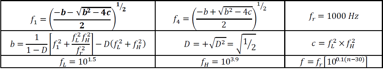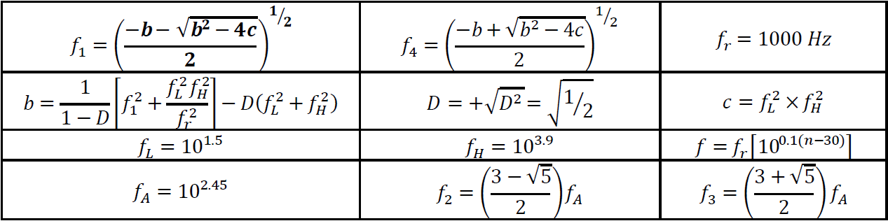A A A Volume : 46 Part : 2 Proceedings of the Institute of Acoustics Why A-weighting Network is inadequate for measurement of noise with high content of infrasound and low frequency noise (ILNF)? Hadi Asady1, Mariana Alves-Pereira2, Mohammad Bakhtiari3, Adrian Fuente4, Siamak Pourabdian1, Farhad Forouharmajd1,* 1Department of Occupational Health Engineering, School of Health, Isfahan University of Medical Sciences, Isfahan, Iran. 2School of Sciences for Economics and Organizations, Lusofona University, Lisbon, Portugal. 3Behbahan Faculty of Medical Sciences, Behbahan, Iran. 4École d’orthophonie et d’audiology, Faculty of Medicine, Université de Montréal, Montreal, Quebec, Canada. 1 INTRODUCTION Humans with normal hearing are able to detect sounds that fall within a frequency range from about 20 Hz to 20 kHz, with the upper limit dropping off somewhat in adulthood. Not all mammalian species are sensitive to the same range of frequencies, and most small mammals are sensitive to very high frequencies but not to low frequencies[1]. As can be seen in Figure 1 the human auditory system has threshold less than or equal to 10 dB for frequency range between 250-8000 Hz. Figure 1: Audiogram showing the average human threshold for pure tones obtained in a sound field, hearing range is usually specified as the range of frequencies audible at a level of 60-dB SPL[2] With decreasing of the frequency from the 250 Hz to lower frequencies the human hearing threshold increase and the sounds with level less than those thresholds are not auditable by most of humans. In the other words the sound level less than the human hearing threshold at the low frequencies (20<=f<=200 Hz) [3, 4] and infrasound (f<20 Hz) will not be detected and perception. This fact was reflected in the A-weighting network. The A-weighting filter was born with the work by Fletcher and Munson to determine loudness level contours for various sound levels. They selected 23 healthy, young males, whom were assumed to have good hearing. These subjects were exposed to a series of different, single, pure tones at different levels of loudness and asked to score the sounds for equal loudness. The tones, produced by valve oscillators and amplifiers, were presented to the listener by occluded (covering the ear) headphones. The basic range of 20 Hz to approximately 16 kHz was used because those were the limits of the equipment at the time[5]. Figure 2 shows the Fletcher and Munson loudness curves from their 1933 paper. Three years later, these curves were used in the first American standard for sound level meters developed by the Acoustical Society of America[6]. Figure 2: Loudness level counter[7] Historically, the A weighting network on a sound level meter were derived as the inverse of the 40 dB Fletcher-Munson curves and used to determine sound level. Since A-weighting correction are too large for low frequencies[8] so we expect that carry out measurement of low frequency noise with using of this network underestimate the results too much. this problem was reported by some researchers. Alves-Pereira and et al. reported that the LFN components of noise-rich environments are most often unknown because noisy environments are usually only described by a dBA-level measurement[9]. Baliatsas and et al. showed that an issue of importance in terms of exposure characterization is the weighting method used to measure LFN. A-weighting is widely used in public health research. Adapted to the sensitivity of the average human ear, sound level meters set to the A-weighting network cannot efficiently evaluate the contribution of LFN components, since the human ear is less sensitive to very low-pitch or high-pitch noises[10]. The question is why A-weighting network is unappropriated for measurement of noises with high content of infrasound and low frequencies? Or approximately equal content of different frequencies including infrasound, low and high frequencies. We will try to answer to this question. 2 MATERIALS AND METHODS At this part we used methods and equations which presented in the IEC 61672-1 as an international standard[11] for calculation of A, C and Z frequency-weighting networks. 2.1 Frequency-weighting C For any frequency f in hertz, the C-weighting characteristic C(f) shall be calculated, in decibels, from: Normalization constant 𝑪𝟏𝟎𝟎𝟎 represents the electrical gain, in decibels, needed to provide a frequency weighting of 0 dB at 1000 Hz. We can calculate 𝑪(𝒇) with using of formulas and values which presented in table 1 and 2. Table 1: Table 2: 2.2 Frequency-weighting A The A-weighting characteristic 𝑨(𝒇) shall be calculated, in decibels, from: Normalization constant 𝑨𝟏𝟎𝟎𝟎 represents the electrical gain, in decibels, needed to provide a frequency weighting of 0 dB at 1000 Hz. We can calculate 𝑨(𝒇) with using of formulas and values which presented in table 2 and 3. Table 3: 2.3 Frequency-weighting Z For any frequency in the range of a sound level meter, the Z-weighting characteristic 𝒁(𝒇) shall be given, in decibels, by 𝒁(𝒇) = 𝟎 𝒅𝑩 Equation 3 2.4 Converting formula The formula for converting octave-band sound pressure levels into sound levels on the X-weighting network is: LX-weighting (dB): Sound level on the X-weighting network, X being C, A or Z. Lpi (dB) = Sound pressure level for the ith octave band, F(dB) = Correction factor, 3 RESULTS With using of formulas 1, 2,3, weight values related to the three different weighting network including C, A, Z were calculated at different frequencies (related to the one-third octave bands) (see table 4). As you can see in table 4 highest weight was related to the frequency 10(Hz) for both A and C weighting network. The weighing increase with increasing of frequency from 10 to 5000 Hz and 10 to 160 Hz in the A and C weighing network respectively and after those frequencies starting to drop. For C-weighing network weight for nine frequ