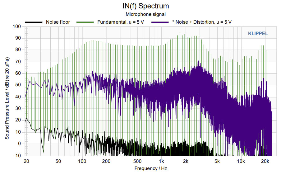 A A A Volume : 46 Part : 3 Proceedings of the Institute of Acoustics Measurements of multitone distortion in octave bands of a cinema mixdown loudspeaker system G. Leembruggen, Acoustic Directions / ICE Design, Australia A. Mardikian, Sony Pictures Entertainment, USA 1 INTRODUCTION 1.1 General For many years, distortion produced by electroacoustic systems has been measured in the forms of total harmonic and total intermodulation distortion. Traditional harmonic distortion measurements using a single test tone or sweeping tone are easy to execute but do not reveal intermodulation products and bear little similarity to music and speech. More recently, Czerwinski, Voishvillo et al [1], [2] produced a comprehensive and detailed treatise on the use of a multitone signal to assess the distortion of sound systems. As a multitone test signal excites many frequencies simultaneously, it produces both harmonic and intermodulation distortion products and therefore provides a more rigorous test signal for measuring system non-linearities. Temme and Brunet [3] provide a discussion of multitone distortion measurements and note that system theory (Refs 3 and 4 in that paper) shows that more than two tones are needed to fully characterize a non-linear system. In his loudspeaker testing facility, Goertz [4] uses sixty tones spread over the range of 20 Hz to 20 kHz. An application note prepared by Klippel Gmbh [5] provides insights into how multitone tests reveal different aspects of loudspeaker non-linearities. Figure 1, which is extracted from Kippel’s application note [5], is a good illustration of the spectra of a wideband multitone signal and distortion. However, Temme and Brunet [3] also highlight three disadvantages of multitone tone distortion measurements: The number of intermodulation tones grows extremely fast with the number of stimulus tones. When power summing the distortion products, the individual distortion components and distortion orders are lost in the measurement. Careful selection of the stimulus frequencies is required so that they match the individual FFT bins in the analysis to prevent frequency aliasing. 1.2 Stimulus for this Work The authors are members of the SMPTE’s 27 CSS committee for Cinema Sound Systems, and this group recently initiated a project to better understand the reasons why some cinema soundtracks don’t sound as good as they should. Part of this project was to undertake measurements of i) non linear distortion and ii) loss of coherence in some cinema sound systems. Given the ability of multitone test signal to excite many frequencies simultaneously, this distortion type was investigated for use in the cinema tests. Although the distortion components with the wideband multitone test signal are visible, there is no information to relate the input frequency bands to output distortion products. In response to this problem, the authors suggested using multitone signals in separate octave bands (OBs) to gain greater insights into the relationships between distortion and perceived sound quality in various sections of soundtracks. Figure 1: Example from Spectra of input multitone signal and distortion products (from [5]). 2 STRUCTURE OF THE TEST SIGNALS The test signal consists of five-second-long bursts of ten tones in each of nine octave bands. Between each burst is a five-second-long gap to allow i) reverberation to die away and ii) analysis of the ambient noise that was present after each octave band burst. To prevent overlap of harmonics and fundamentals in each band, the frequencies of the tones should be prime numbers. In the bands 63 Hz to 8 kHz, the frequencies are prime numbers and were selected for best consistency in the spacing between frequencies. In the 31 Hz band however, there were not sufficient prime numbers in the range 22 Hz to 44.5 Hz and frequencies were selected for suitable spacing. Table 1 lists the selected frequencies. Table 1: Frequencies of the tones in each octave band. Octave band Multitone Frequency 31.5 23 24.7 26.6 29 31 33 35.5 37 41 43 63 47 53 59 61 67 71 73 79 83 89 125 89 97 101 107 113 127 137 149 157 163 250 181 193 211 229 251 269 281 293 317 347 500 359 389 421 449 487 523 563 607 653 701 1000 769 839 911 983 1051 1123 1187 1259 1327 1399 2000 1423 1543 1663 1801 1931 2063 2207 2351 2503 2663 4000 2833 3089 3359 3643 3929 4241 4561 4889 5227 5581 8000 5659 6173 6701 7229 7757 8311 8861 9413 9967 10531 So that the test signal replicates the demands on long-term and short-term power levels of typical programme content, it is desirable that the temporal structure of the multitone signals is similar to that content. In its simplest form, the crest factor (which is the ratio in dB of the peak signal level to the long-term RMS level of the signal) should be approximately 12 dB or higher. This can be achieved by randomising the phases of the individual tones. A random number generator was used to produce a set of ten randomised phase shifts. These phase shifts were applied to each of the ten tones, which were summed to yield the multitone signal. The crest factor of the composite signal was then computed and the process repeated three times. The set of phase shifts with the highest crest factor was selected and applied to each of the nine bands. Table 2 shows the selected set of phase shifts. Table 2: Set of phase shifts applied to the ten tones. Tone Number 1 2 3 4 5 6 7 8 9 19 Phase shift (Degrees) 63 75 -34 -117 169 -32 37 -92 -95 -158 The statistics of the composite tone signal are shown in Table 3. (Kurtosis is a statistical measure used to describe the degree to which the levels in the composite signal gather in the tails or in the central peak of a frequency distribution. (The peak is the tallest part of the distribution, while the tails are the ends of the distribution). The percentile levels of the composite signal in each OB are shown graphically in Figure 2. Table 3: Statistics of the resulting composite signal in each